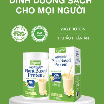 Fogood mang đến giải pháp dinh dưỡng thuần thực vật hiện đại với nguồn đạm sạch từ đậu Hà Lan vàng, kết hợp cùng tảo xoắn quý, hạt chia, óc chó, macca và hạnh nhân tạo nên một công thức cân bằng, giàu dưỡng chất và thân thiện với hệ tiêu hóa.